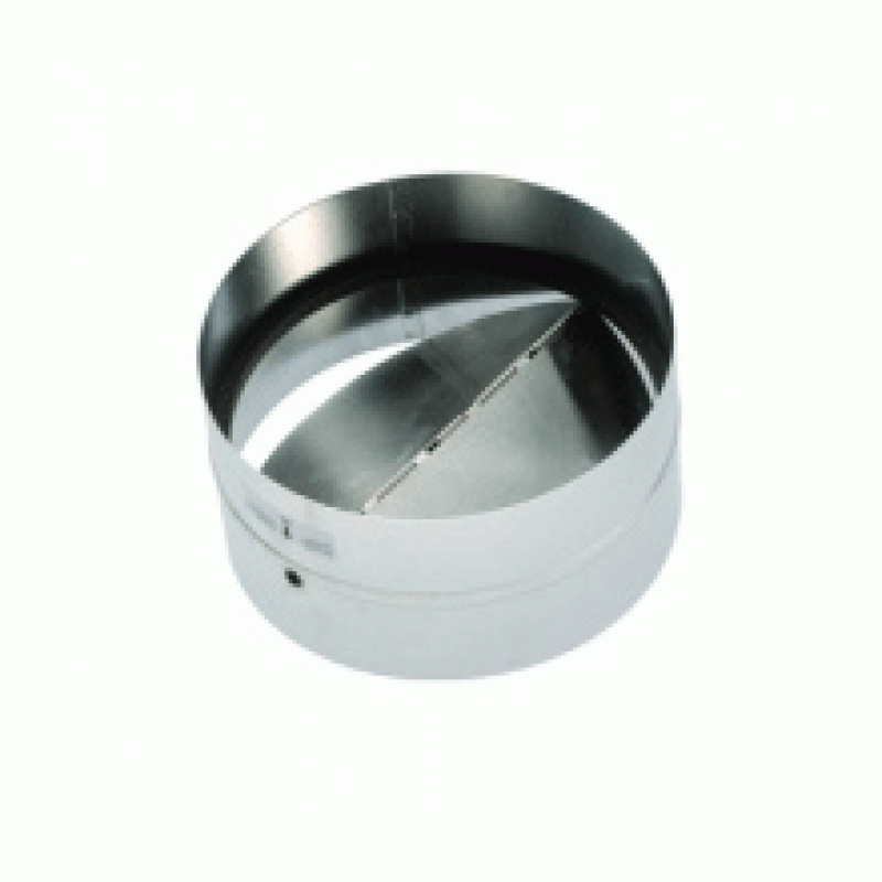 Клапан изготавливается из оцинкованной стали, внутри конструкции две заслонки на пружинах, клапан может устанавливаться в вертикальном или горизонтальном положении.